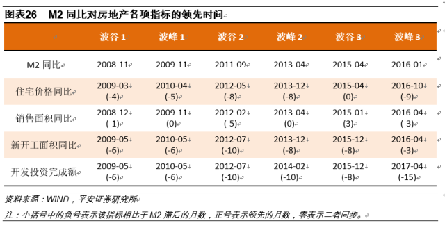 1、M2周期与地产销售同步,领先于房价、投资、新开工等指标。