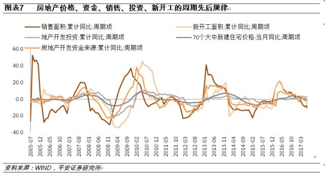 我们认为,本轮周期中资金来源、投资、新开工等指标相对于地产销售的时滞效应被显著拉长,主要有几点原因造成: