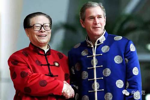 △穿西装的时候,由于身高限制马云的领带直接垂到裤裆了……旁边克林顿的领带就长度刚好。