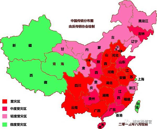 江西也是“北方传销”和南方“连锁销售”(‘资本运作‘)的交汇之地,九江、鹰潭、景德镇等城市假天狮最多,新余、萍乡、宜春、抚州、赣州则以“连锁销售”为主。