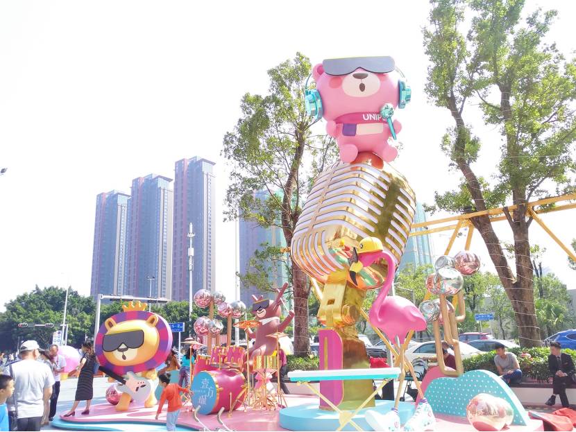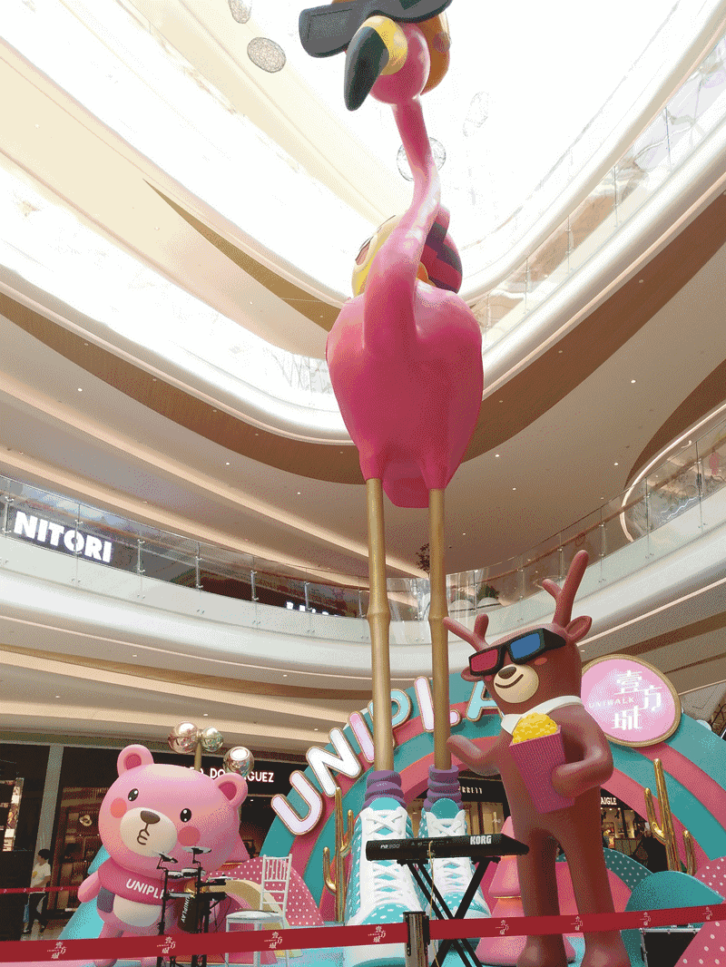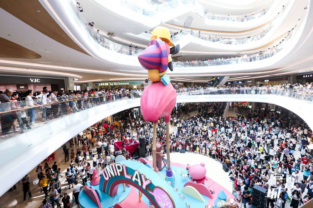 其中值得一提的是,位于一层主中庭的《乐不宜迟》成为全场瞩目的拍照“圣地”,L1长廊的《奇趣体验》,形态各异的四大主题原创IP形象UNIPLAY也吸引了众人的目光。