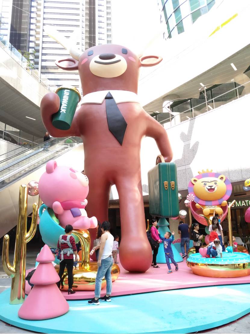 中心广场:命名为《慢叹时光》的这个艺术装置,囊括了巨型鹿先森、熊小萌、阿烈、壹壹等四大主题创意IP形象,寓意着在快节奏的都市生活中也需要找到一个悠闲的空间。