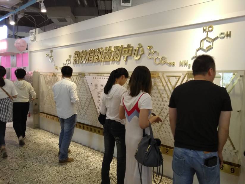 在该街区的中心,有“热忱指数监测中心”墙,可以测爱情、事业、学业等一周、一月内的运势,吸引了大量消费者进行围观和测试。