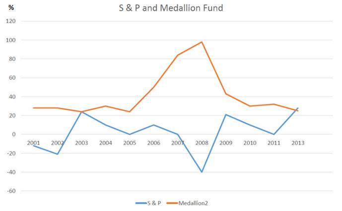 图4:大奖章基金 VS. 标普500 年化回报率 (2001-2013)