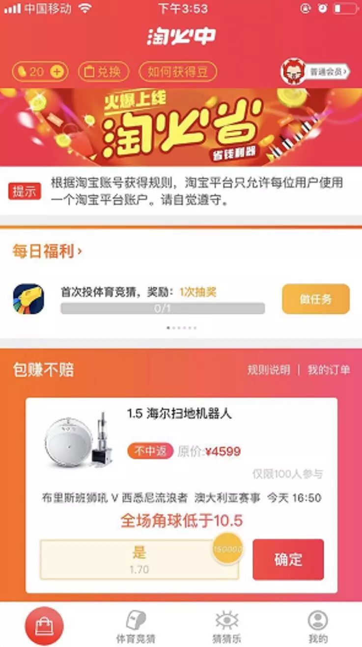 (“淘必中”更新后的首页)