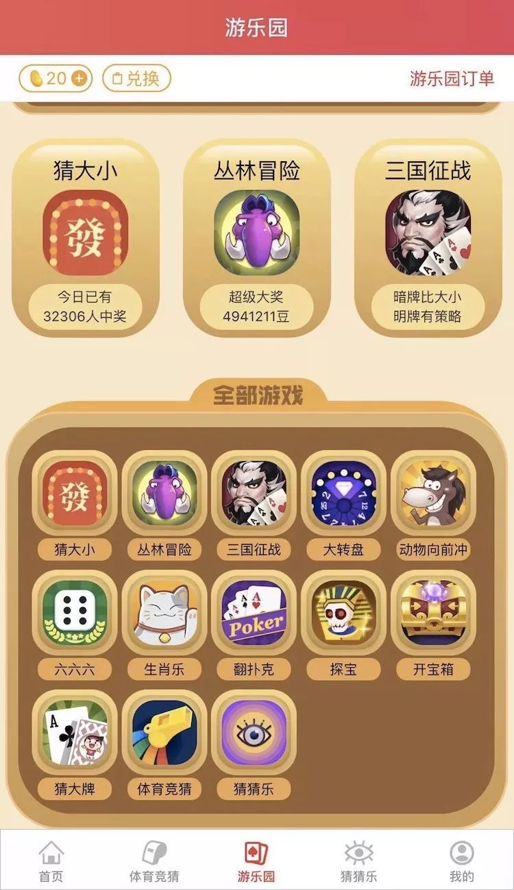 目前,这款应用可向用户提供“体育竞猜”和“猜猜乐”这两个游戏板块,分别对应各大体育赛事的比赛结果竞猜及娱乐、科技、金融等热门话题的竞猜活动。而据“终结诈骗”此前爆料,“淘必中”APP中的游戏分类除了上述两个板块之外,还有一个名为“游乐园”的板块,其中包括“大转盘”、“猜大小”等赌博性质较为严重的游戏。