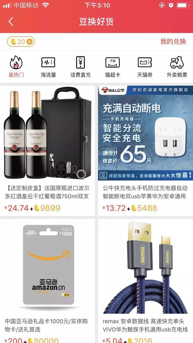 据蓝鲸TMT记者了解,在玩法上,“淘必中”使用了“豆”作为游戏币,玩家购买淘宝店铺的优惠券便可获得相应的“豆”。这个“豆”虽然不能直接兑换成现金,但可用于“淘必中”内置的“折扣购”、“豆换好物”等消费,玩家每购买一件商品需要消耗不同额度的“豆”和现金。