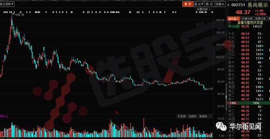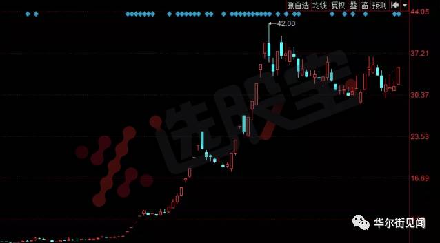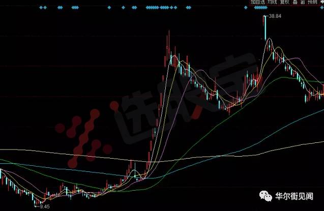 2015年4月3日开始停牌筹划重组,11月26日复牌后,连续10个一字板。公司股价在年底前突破80元。但随后而来的股灾,以及公司重组涉嫌违规的事件被曝光,导致股价持续重挫。