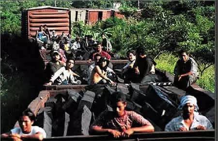 墨西哥偷渡者藏在运煤列车上