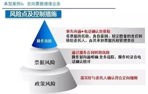 (1)票据类型最好为银行承兑汇票,但是不排斥商业承兑汇票(如存单质押式创新);(2)单批票据规模不低于2亿;(3)单批票据统一到期结算,结算日以该批票据最后到期日为准;(4)银行承兑汇票或商业承兑汇票最好由委托人或者托管人之一背书转让;(5)定向票据业务为纯通道业务,出资方(委托人)和出票方(转让人)两头在外;(6)定向票据业务管理费年化不得低于0.08%,一般管理费年化0.1%;