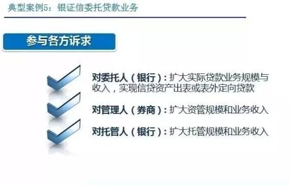 银证信通道业务是指银行借道券商定向产品通道,转入信托投放贷款的业务,既优化银行报表结构,又增加贷款收入。银证信委托贷款业务本质为提升银行放贷能力,优化银行报表结构。