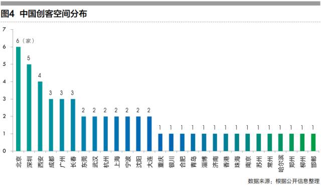 第二层面是科技基础较好的中心城市的创客空间。如西安、杭州、武汉、成都、厦门等地的创客空间开始起步。但由于这些产业基础以及科技服务限制,创客空间缺乏较系统发展计划、政策资金以及产业配套支持,发展相对滞后。
