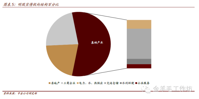 基础产业、工商企业和房地产成为“明股实债”类资产主要投资方向。预计基础产业占比55-65%,工商企业占比25-35%,房地产占比20-25%。其中,基础产业主要包括交运仓储、电力水热等供应、水利环境以及公共服务等。