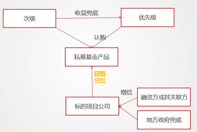 银行、保险等金融机构与合作客户共同发起的产业基金(或资管计划),撮合资金投资于基金(或资管计划)优先级,合作客户投资基金劣后级,基金资金投资目标项目,方式包括债券、股权、收益权等。其中,“明股实债”资金以股权方式进入,并与投资期初与合作方签署回购协议,约定一定期限后由其溢价回购股权或提供保障措施。