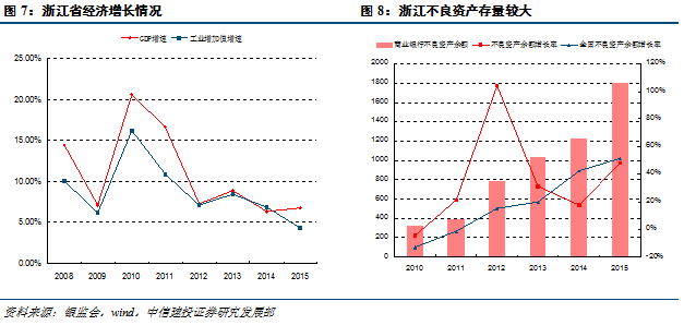 尽管此次重组将浙商资管(AMC)排除在外,但我们判断大概率缘于近期监管层对非银机构注入的审慎态度,未来浙江省对以AMC为核心,打造金控平台的战略或不变。浙江省不良资产存量高企。在我国经济进入刹车通道的大背景下,作为GDP排名第四的浙江省,经济增速和工业增加值增速也出现下滑,由于工业占比较重(46%),浙江省2015年商业银行不良资产余额高达1800亿,粗略统计其绝对值居全国各省份之首。不良贷款率2.37%也远高于全国平均水平1.67%。浙商资产作为省内唯一一家AMC,将大有所为。