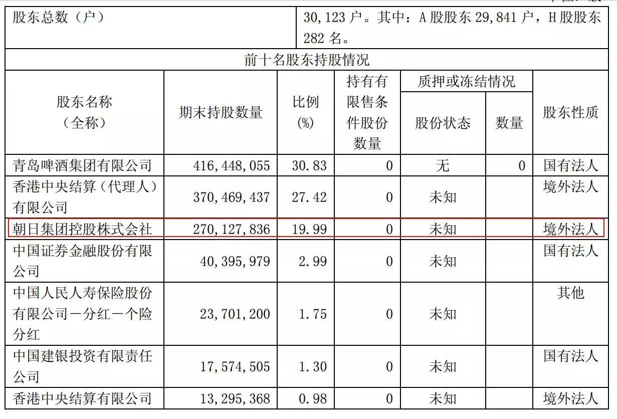 据了解,朝日入股青啤以来,原则上只是充当了财务投资。2009年,朝日啤酒以6.665亿美元购入青岛啤酒19.99%的股权。