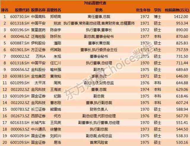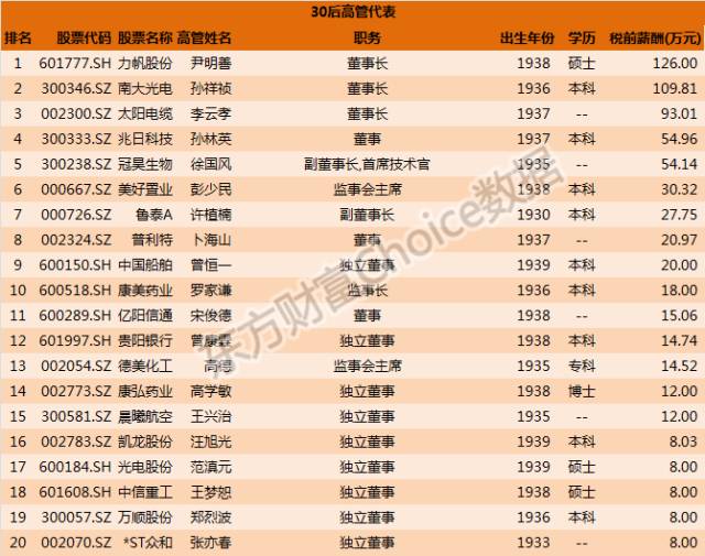 值得注意的是,年长一辈中,“30后”高管共计72位;而年青一代中,“80后”高管共计802位,“90后”1位。
