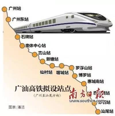 而据汕头新闻网2017年初消息,广汕高铁将连通汕头火车站,沿途新增三个站点,分别是南塘,惠来和汕头南站,计划在深汕合作区设站!