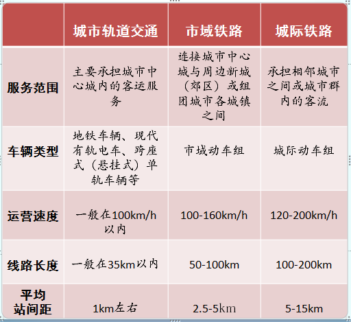 连接城市中心城与周边新城(郊区)或组团城市各城镇之间的轨道交通,服务市域范围内的通勤、通商、通学、休闲等规律性客流,是城市综合交通运输体系的重要组成部分,服务功能介于城际铁路和城市轨道交通之间。