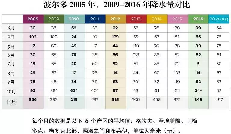 (6)2016 年的波尔多,有一个潮湿的春季,干燥的夏季,但在收成阶段,9 月 13 日后,夜晚气温凉爽,整体干燥,偶有雨水,这对重要的采收来说非常完美。