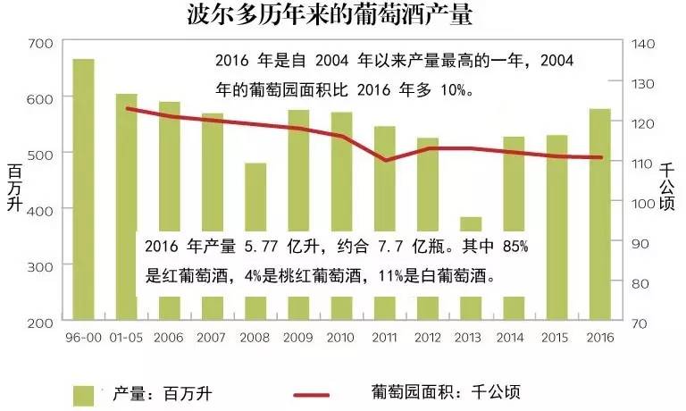 如图可知,2016 年的产量是波尔多近 10 年来最大的,每公顷产量也是自 2004 年以来最高的。