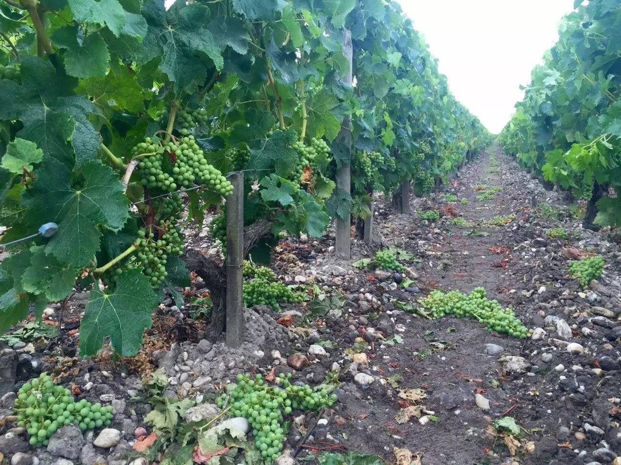 7 月 28 日,波亚克产区。很多葡萄园开始收捡颜色仍是绿色、负重太多而掉落的梅洛葡萄。