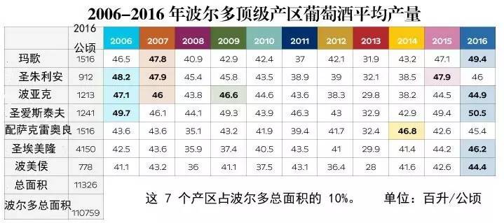 波尔多顶级产区的 2016 年产量较可观,玛歌(Margaux)、波亚克(Pauillac)、圣朱利安(St-Julien)、圣爱斯泰夫(St-Estephe)、配萨克雷奥良(Pessac-Leognan)、圣埃美隆(Saint-Emilion)和波美侯(Pomerol)七大产区占了波尔多总产量的 10%,其中有 5 个创新高。当然,这些产区的葡萄酒,并不是所有的都会参加期酒销售。