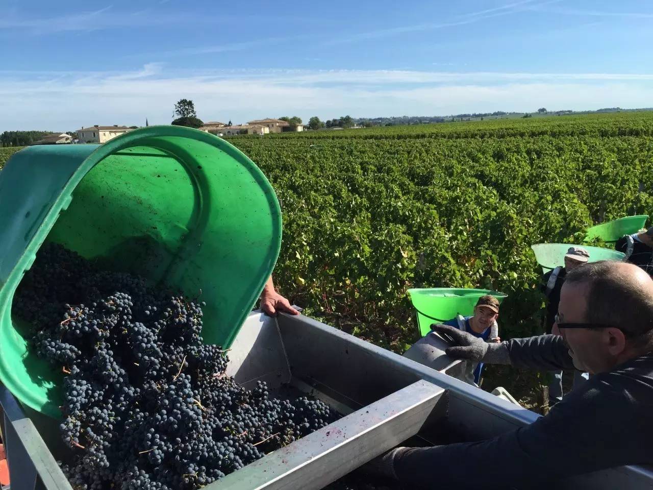 10 月 4 日,波美侯产区。10 月第一个星期,梅洛采收如火如荼地进行中。