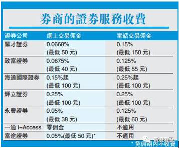 证券买卖杂费繁多,小数怕长计。综观各间证券行及银行的证券户口,证券行提供的证券户口,部分收费始终较低。