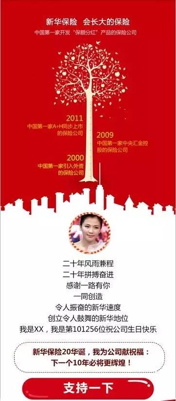 1、长按识别二维码,生成自己的专属页面,为新华保险20岁生日送祝福;