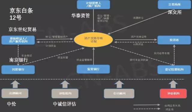 从交易结构来看,京东白条交易结构和花呗类似,底层基础资产为应收账款债权,计划管理人和主推广机构为华泰资管,托管银行南京银行,交易流通场所为深圳证券交易所。运作模式上由京东白条的计划管理人华泰资管设立并管理资产专项计划,将专项计划资金用于向原始权益人京东世纪购买基础资产。