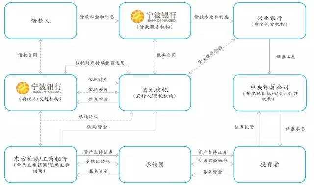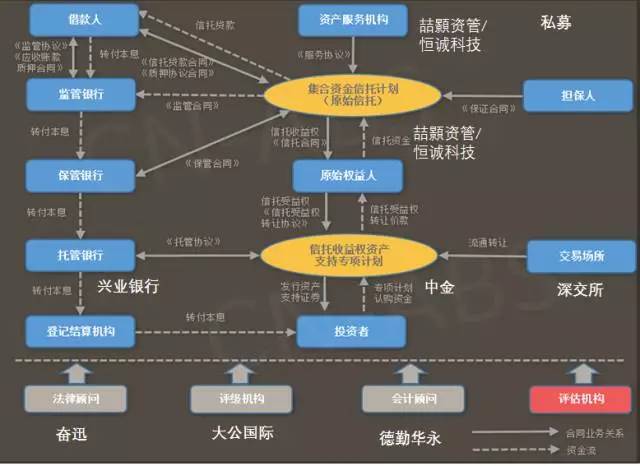 相比于交易所市场,银行间市场相对规模较小,与交易所市场两大独大的局面相比,银行间市场发起机构更多元分散,主体上多为银行为原始权益人,如交通银行发的交元系列,宁波银行发的永动系列,中信银行发的惠益系列,广发银行发的臻元系列等等,但是也有消费金融公司为原始权益人的如捷信金融,中银消费。银行间市场发行的ABS,由人民银行和银监会主管,交易结构较为标准固定,一般由银行和消费金融公司委托信托公司作为受托方设立SPV发行资产证券化产品,银行或消费金融公司作为发起方,通常担任贷款服务机构,因此信用风险实际并未完全隔离。
