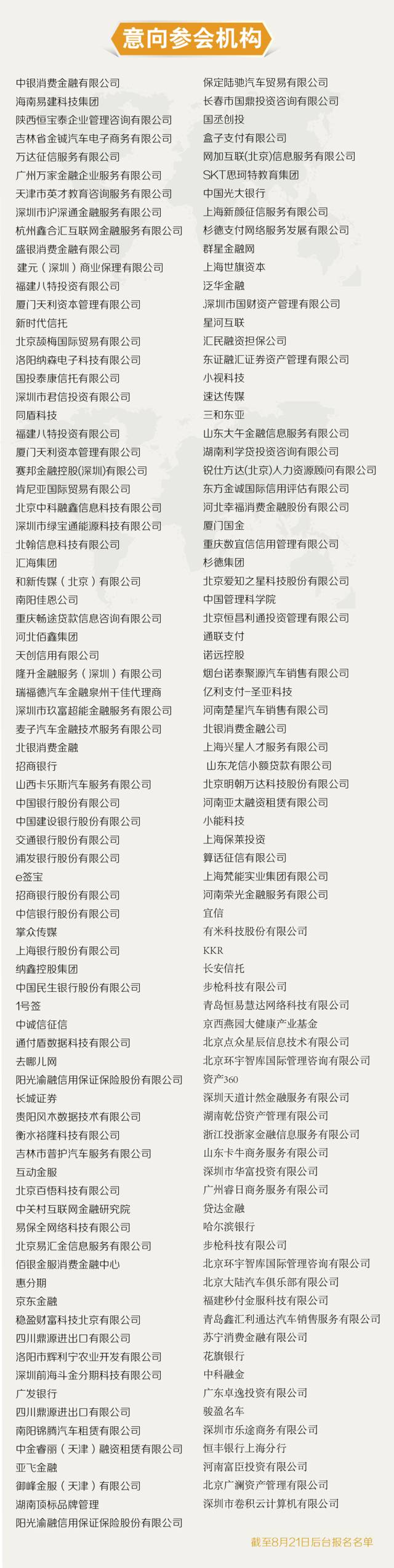 2017中国消费金融年会即将召开(部分企业名单更新至8月21日)欢迎关注