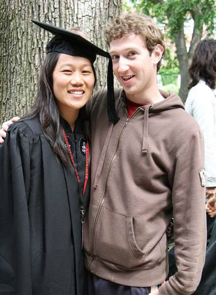 (普莉希拉毕业典礼时与扎克伯格的合影)