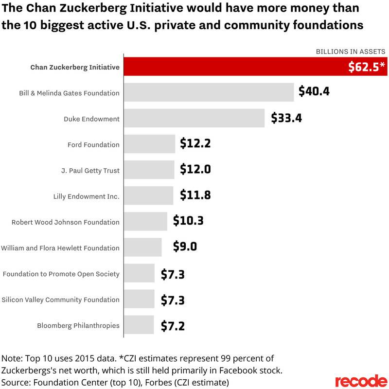 CZI资产与美国前十慈善机构资产对比(图中美国前十慈善机构资产是2015年数据)