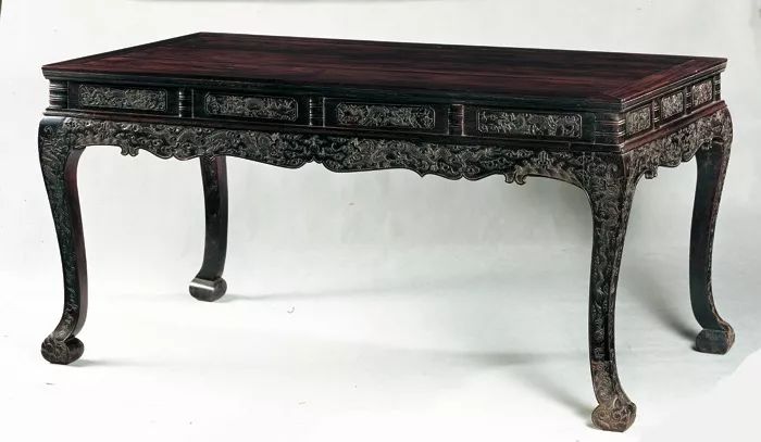 清康熙·紫檀三弯腿大画桌