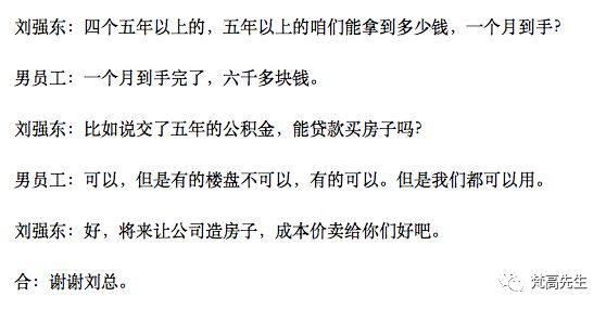 再往前一点的,比如说京东的刘强东。早在2017年的2月份的央视专访中,刘强东就放狠话:京东将来造房子按成本价给员工。