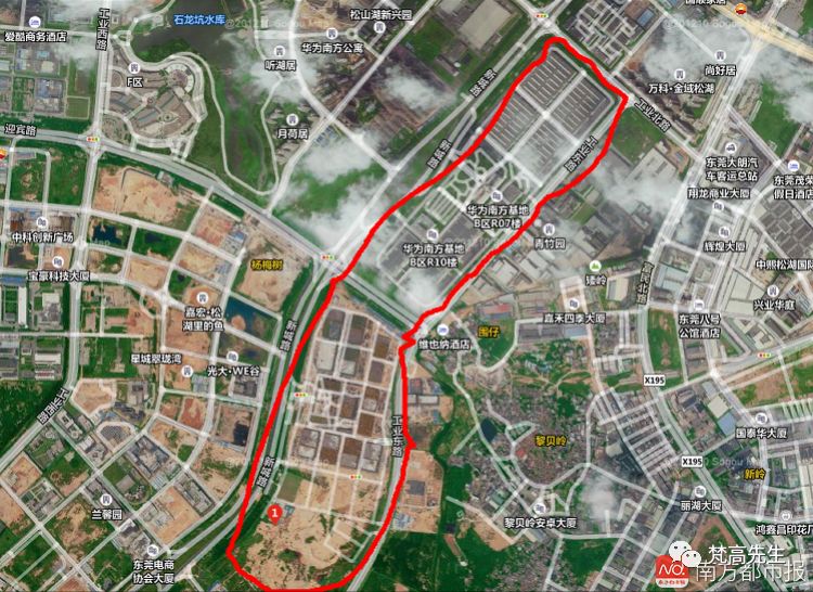 文中表述:从卫星图可看到,华为一期已经建好,二期还在施工中。途经松山湖新城大道,即可看到醒目的华为logo。相比华为终端基地,华为南方工厂采用”灰色“的现代写字楼,非常低调。