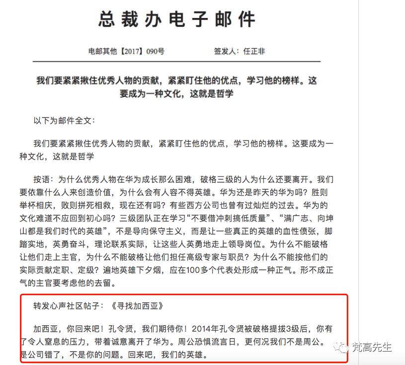 而关于用人战略,印象最深刻的是2017年华为员工离职事件。2017年9月6日,任正非致歉离职员工:你回来吧,是公司错了!并且将该邮件分发给全体员工。