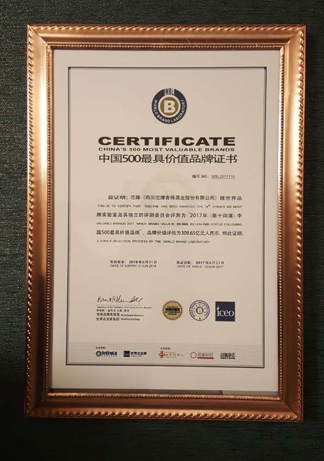 适逢沱牌舍得改制一周年之际,6月22日,从北京举行的第十四届“世界品牌大会”上传来重磅佳讯——沱牌舍得连续13年入选中国500最具价值品牌榜,2017年,“沱牌”品牌价值为309.65亿元,比2016年增长了50.95亿元;