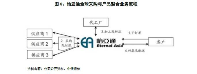 此外,怡亚通依托现有服务网络,对资源配置进行优化整合,为客户实现全球范围采购和销售,并可提供定制产品,帮助客户企业优化供应链结构,提高市场竞争力。具体模式基于广度供应链业务,结合客户委托外包加工生产的环节,完全实现由客户委托采购原材料、生产、配送到终端用户的全面性供应链服务,产品的研发到投放周期大幅缩短,供应链服务价值得到完全体现。