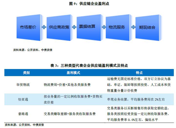 相较于一般贸易企业利用信息不对称、地域及时间差异所产生的商品差价从中赚取利润,供应链企业则可通过收取服务费及商品价差等多渠道获取利润,而服务费主要通过以下两方面获得:
