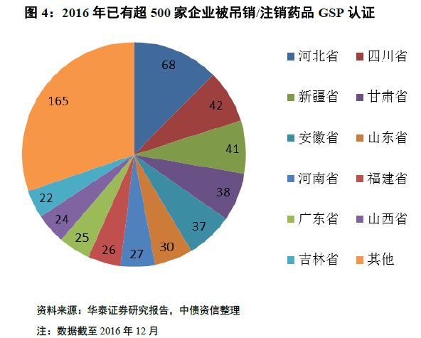 此外,质量风险也是整个行业需要面对的重要风险。药品流通环节众多,每个环节可能都涉及到采购、验收、仓储及运输,流转链条很长。从概率上来看,环节越多、链条越长,要保持整个流转链条不出现问题的难度越大。此外流通环节的末端地方中小流通企业出于经营压力考虑,未能及时对软硬件进行更新改造,均可能使得药品在流通过程中出现质量问题。例如2016年上市公司沃森生物的下属子公司山东实杰因质量问题被撤销GSP认证,对沃森生物的经营产生重大冲击。