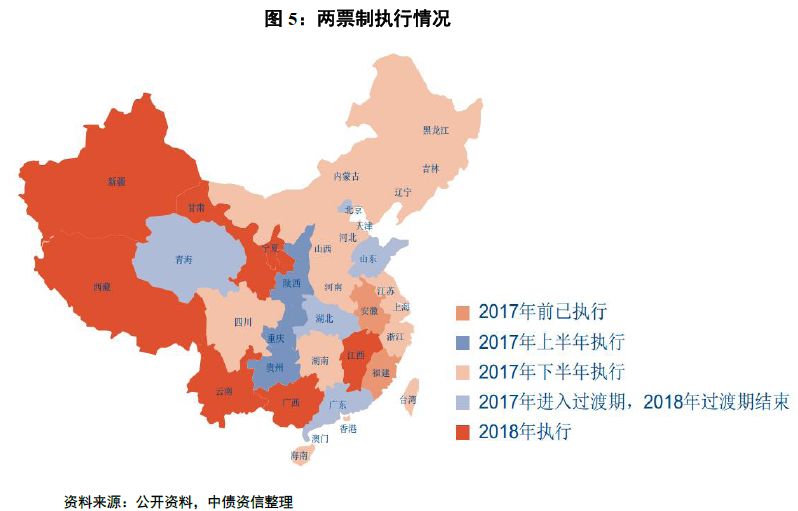 从落地执行来看,截至2017年11月末,31省市均已执行或出台具体执行时间表,如下图所示,整体来看两票制执行超预期,预计2018年能够实现药品两票制的落地执行。