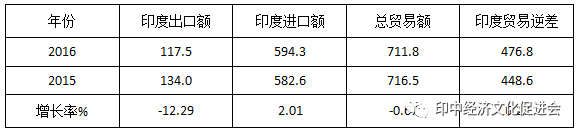 2016年中印双边贸易凸显了几大趋势,首先先通过图表看一下一些基本数据。