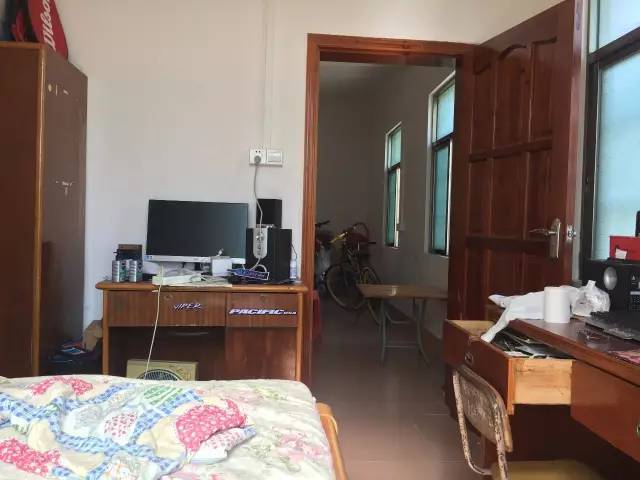 周荣家的房屋就在白蕉镇新二村穿村公里边。与周边邻居很多五、六层高的自建楼房相比,其房屋显得太简朴:只是一层的建筑,两个卧室一个客厅,屋里家具显得比较旧,一把台式电脑前的椅子,生了不少铁锈。房子总面积大概100平方米,搭着树叶等遮盖物的厨房屋顶已经被台风吹漏。