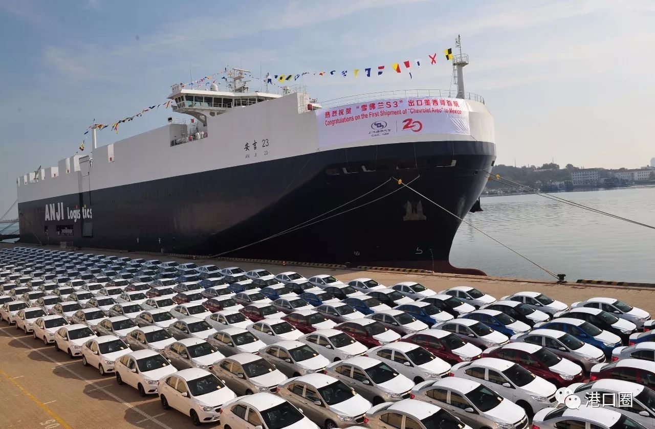 港口圈(ID:gangkouquan)从烟台港集团获悉, 10月25日上午,由上汽通用、安吉物流共同举办的雪佛兰赛欧S3出口暨“安吉23”北美首航仪式在此举行。