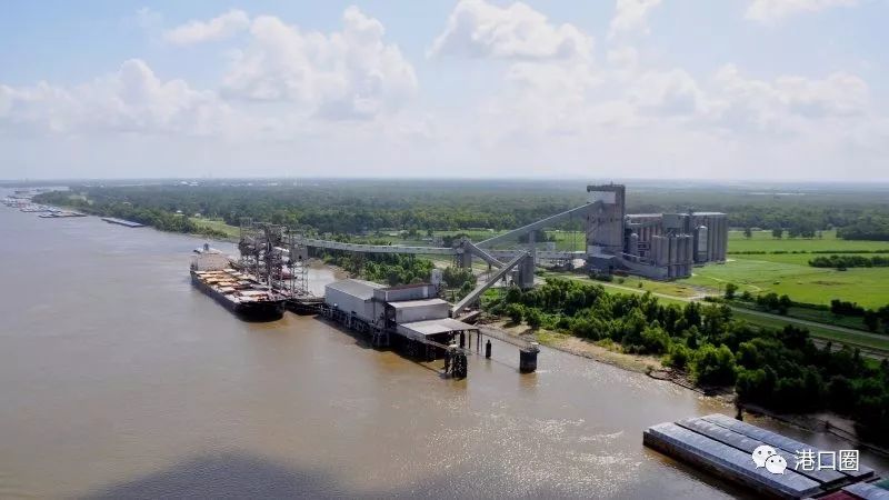 美国密西西比河是美国南北内河航运的大动脉,在美国本土48州中整个水系流经了31个州,密西西比河的货物运输周转量约占全美内河货运量的60%,全美有一半的谷物和大豆经由密西西比河上游运出,在下游主要的粮食码头,通过驳船、铁路、卡车集港装船的粮饲谷物和大豆也占了全美国的60%出口量。密西西比河纵深可从墨西哥湾的出海河口一直航行至明尼阿波利斯,航道长3400公里,由于受相似的航道大桥净空高度、水深等条件的限制,一般吃水在-13.7米以内的海船,从河口可以航行到水运距离河口 395公里的巴吞鲁日港口装卸进出。在巴吞鲁日港口下游到新奥尔良港口213公里的密西西比河三角洲的水运岸线上,分布有10家主要的粮食码头:路易达孚Allen码头、ZEN-NOH全农码头、Peavey Paulina码头、嘉吉Reserve码头、ADM Reserve码头、ADM Destrahan码头、邦基Destrahan码头、ADM AMA码头、嘉吉Westwego码头和CHS (Cenex Harvest States)码头。