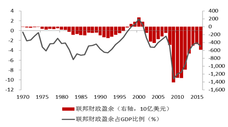 第三,特朗普税改将增加政府财政负担。尽管刺激财政政策会促进经济增长,带动企业经营业绩改善,增加税基,但无法完全抵消税收减少影响。据测算,特朗普税改将使财政赤字在未来10年增加1.5万亿美元左右。因此,特朗普面临的首要问题是如何应对减税后政府开支触及债务上限的问题。一方面,美国国债总额已经接近20万亿美元,占GDP比例从2000年的55%上涨至2016年的108%,继续大规模发行空间有限。另一方面,美联储处于货币政策正常化周期,既增加了联邦政府存量债务的偿还负担,也增加了新增债务融资成本。因此,如果解决不了政府财政赤字增加、债务频繁触及上限的问题,最终的特朗普税改方案可能会大打折扣。