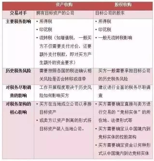 第一,交易类型影响税务尽职调查和交易架构的安排,而这种影响取决于海外并购的商业目标。
